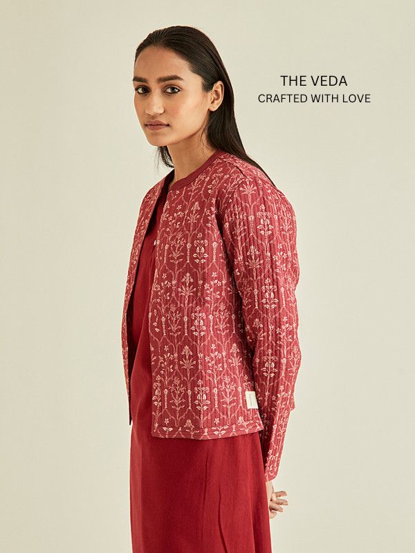 Women Indigo Dyed and Hand Block Print Open Front Patchwork Sustainable Jacket with Flared Hem/ India/ Ethnic/ Fusion Wear/