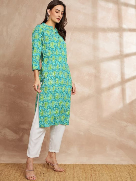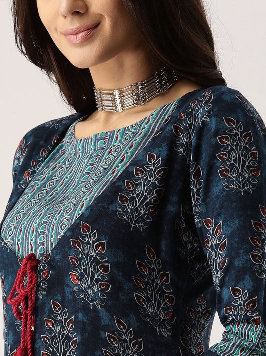 Indigo/Yellow asymmetric cotton printed kurta/ Tunic/ Cotton churidar Pant/ Block Print / Bollywood / Handloom / Handmade/ Ethnic/India