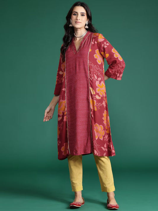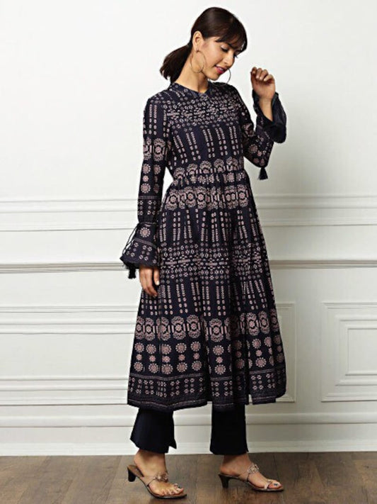 Long Dress/ Kurta with pant/Tunic/Long Dress Ethnic Jacket/Batik Print/Bollywood/Handmade/Tassel/Bohemian/Traditional/India/Summer/Textiles/