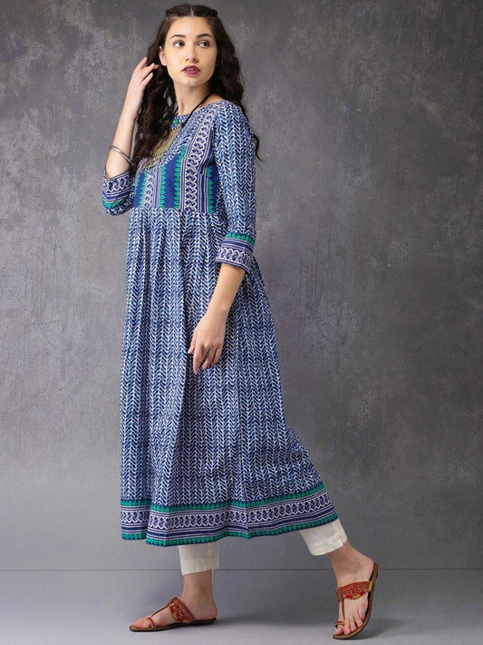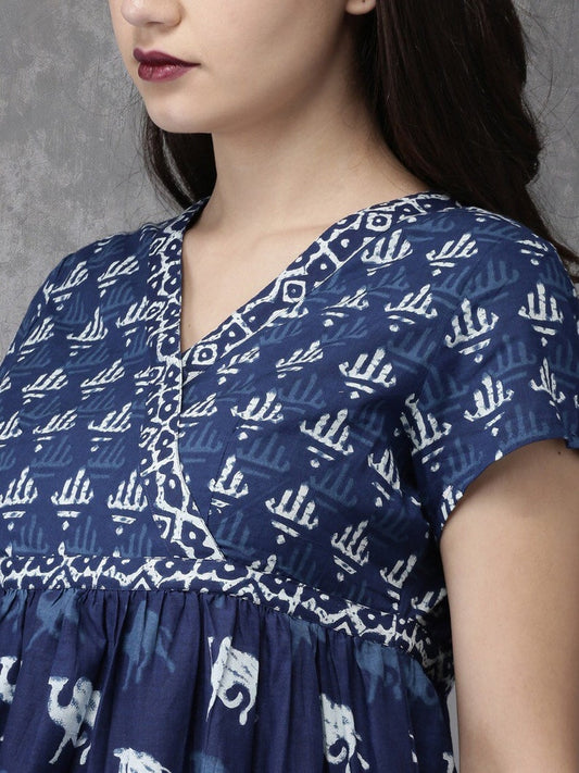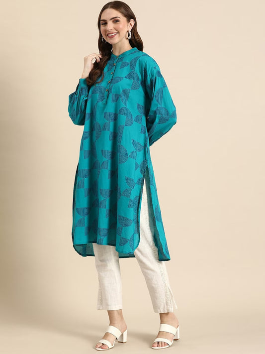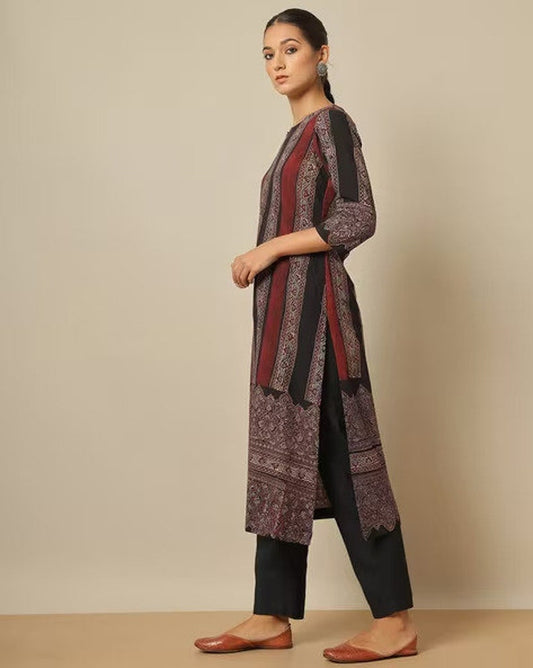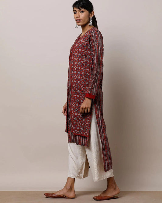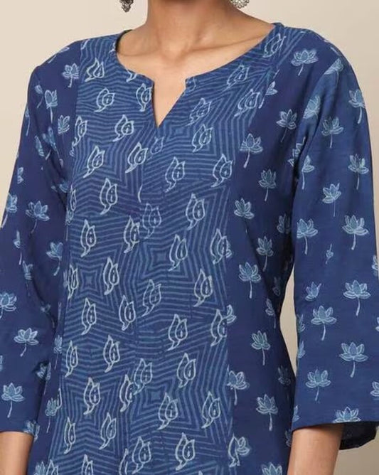 Handblock Ajrak Print Cotton Straight Kurta/Women Ethnic Kurta India/ Cotton/ Indigo/