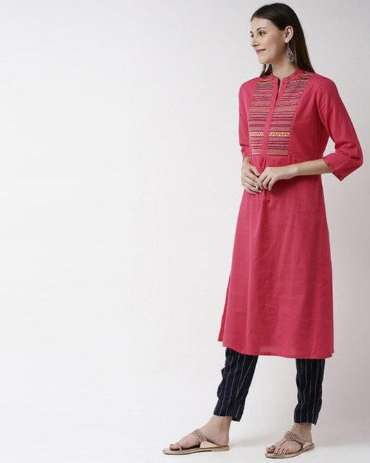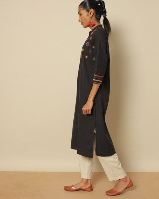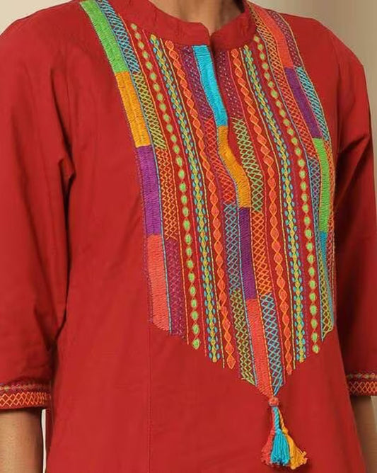 Ethnic Cotton Kurta/ Summer/ Embroidered/ Thread Work/ Mandarin Collar Kurta/Summer