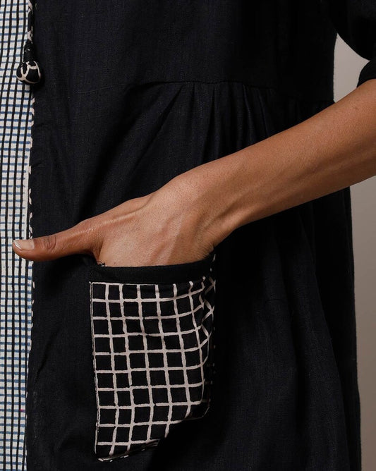 Indigo Hand Block Print Straight Sustainable Kurta with Pockets/ Organic Cotton/ Dabu Print