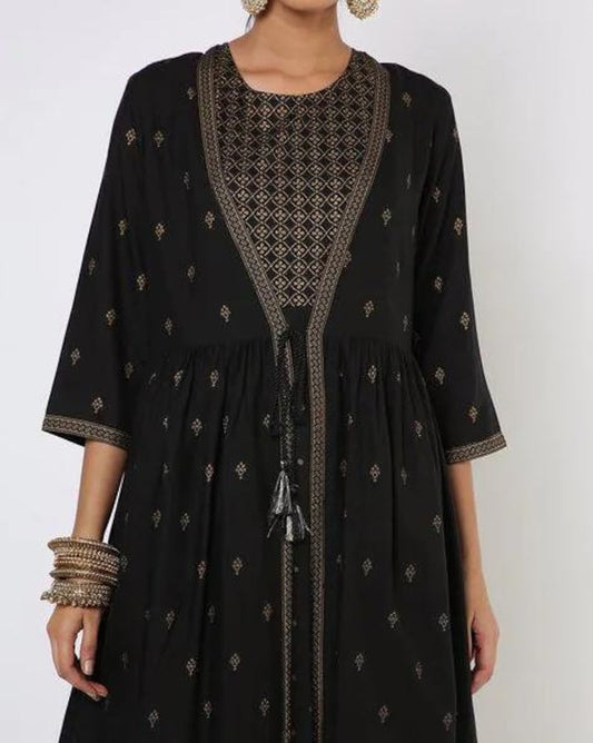 Ethnic cotton/Kutch/Rajasthan/ Thread work Mirror work/ kurta/ dress/ Tunic/ Dabu Print kurta with an ethnic jacket and pants /Embroidered /